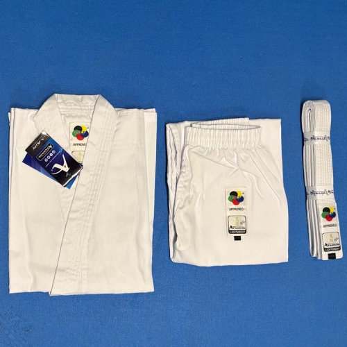 Diese preisgünstige Karate-Uniform wurde mit einem modernen Schnitt für Komfort und Bewegungsfreiheit (länger, weiter) entworfen. Sie ist aus einem Polyester-Baumwoll-Mischgewebe gefertigt, das dank hochwertiger Verarbeitung nicht einläuft und knitterfrei ist. Diese Eigenschaften verleihen jedem Karate-Anfänger ein gepflegtes, ordentliches Aussehen. Im Lieferumfang enthalten ist ein schöner weisser, maschinengenähter Gürtel. Elastischer Bund und Schnürung (von Grösse 90 bis 150) erleichtern unseren jungen Anfängern das Anziehen.